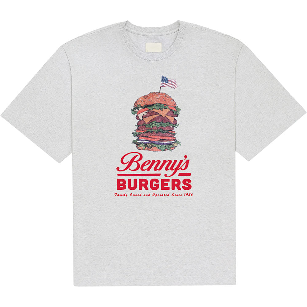 Stranger Things T-Shirt: Benny’s Burger (Grey) - A Rockoff official licensed product featuring the Stranger Things - Benny’s Burger design motif.