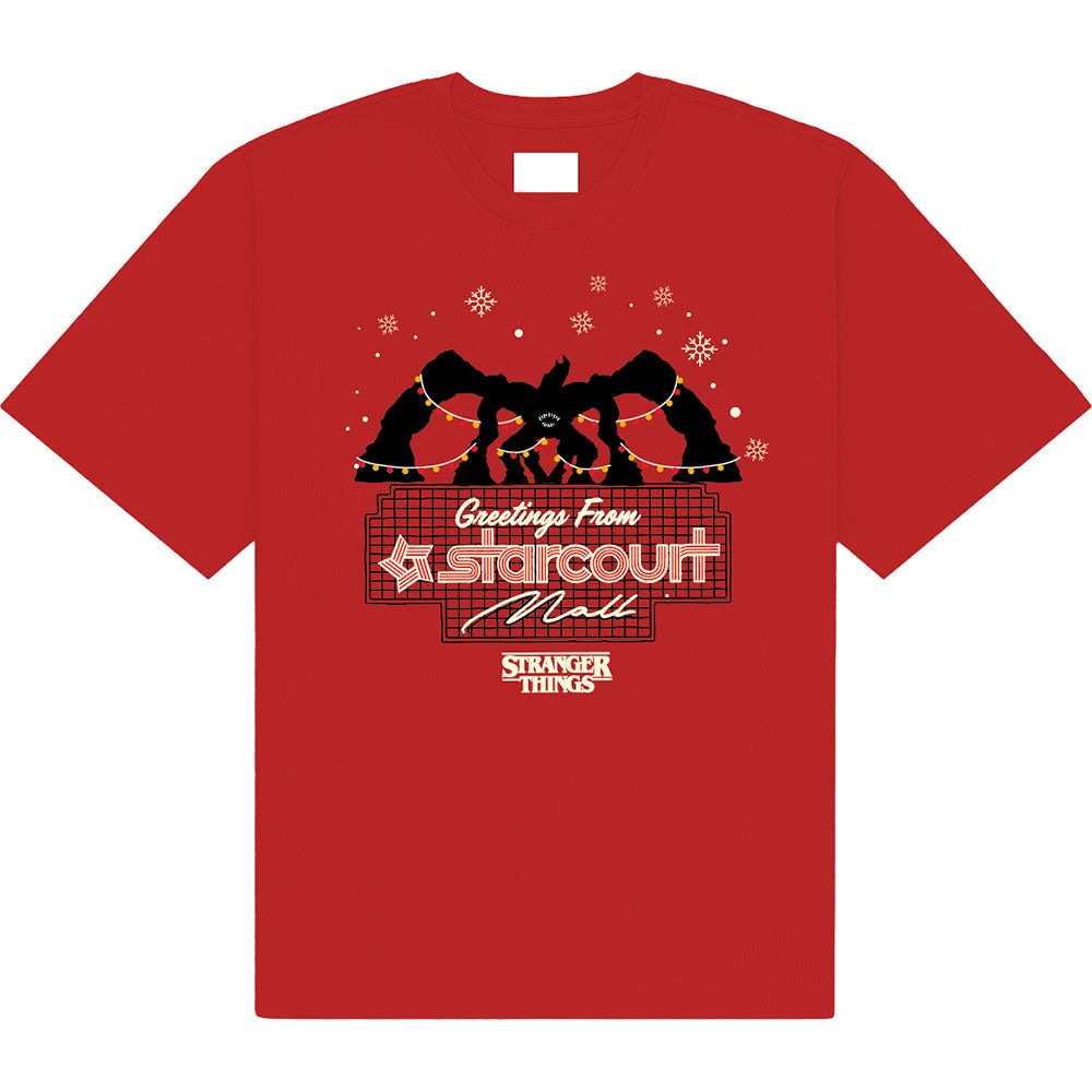 Stranger Things T-Shirt: Greetings From Starcourt (Red) - A Rockoff official licensed product featuring the Stranger Things - Greetings From Starcourt design motif.