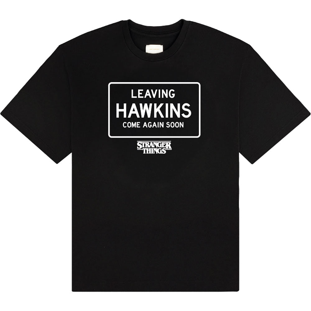 Stranger Things T-Shirt: Leaving Hawkins (Black) - A Rockoff official licensed product featuring the Stranger Things - Leaving Hawkins design motif.