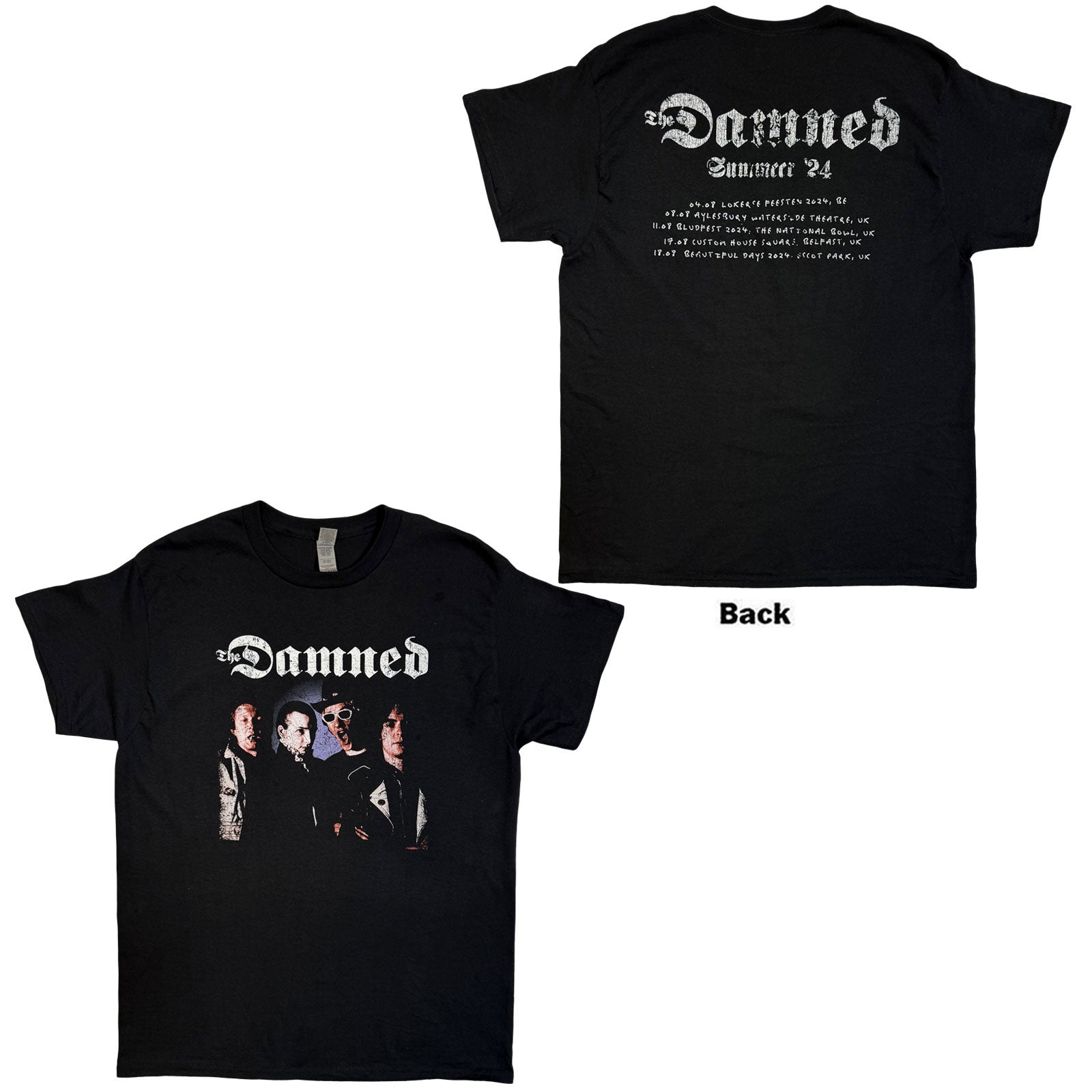 The Damned T-Shirt: Photo EU Tour Summer 24 (Black) (Back Print) (Ex-Tour) - A Rockoff official licensed product featuring the Photo EU Tour Summer 24 design motif.