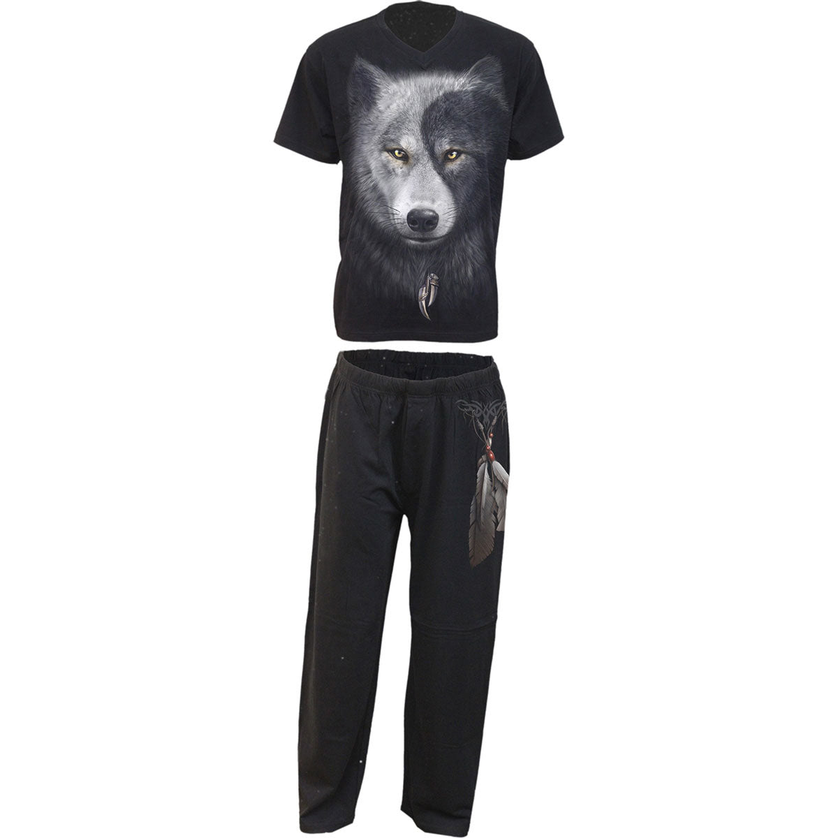 Spiral 4 Piece Gothic Pyjama Set: Wolf Chi (Black) (Back Print) - A Rockoff official licensed product featuring the Wolf Chi design motif.
