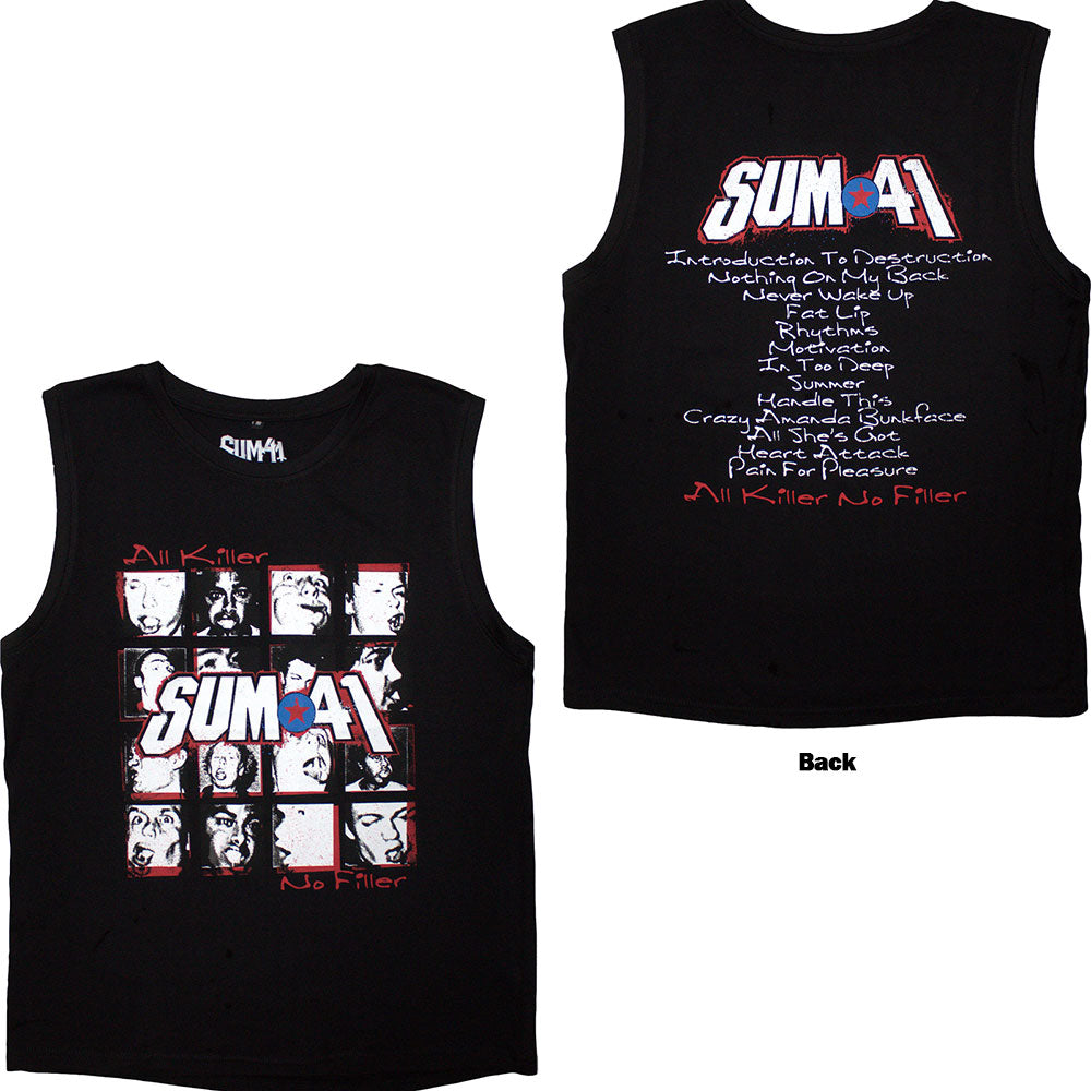 Sum 41 Tank T-Shirt: All Killer No Filler Tracklist (Black) (Back Print)