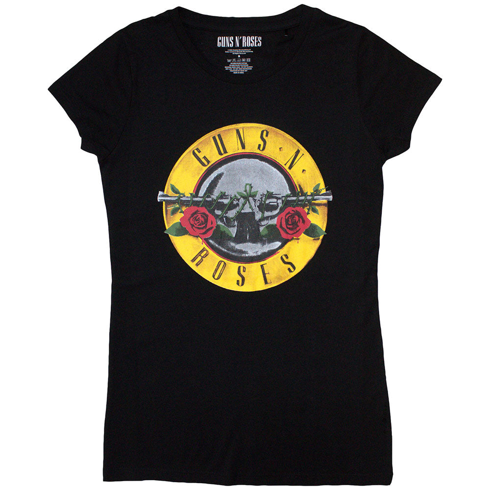Guns N' Roses Ladies Slim Fit T-Shirt: Classic Bullet Logo (Skinny Fit) - A Rockoff official licensed product featuring the Classic Bullet Logo design motif.