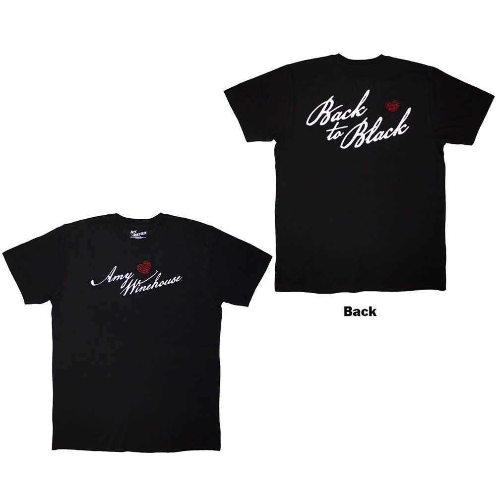 Amy Winehouse Embellished T-Shirt: Back To Black (Black) (Back Print) - A Rockoff official licensed product featuring the Back To Black design motif.
